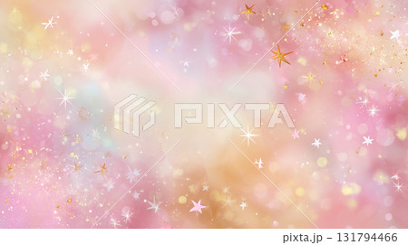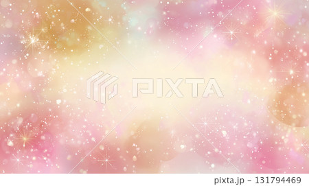 柔らかいピンクゴールドグラデーションに光の粒ときらめきが舞う背景