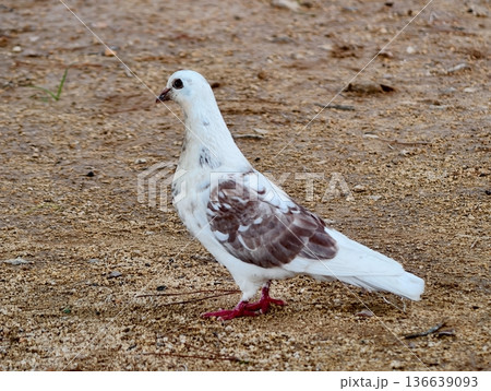 Pigeon On Ground, Urban Scene Featuring Messaging Pigeon With Colorful Patches And Delicate Feathers