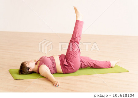 ヨガをするぽっちゃり体型の若い女性 プラスサイズモデル イメージ
