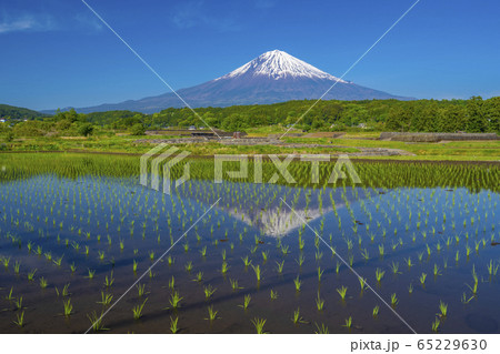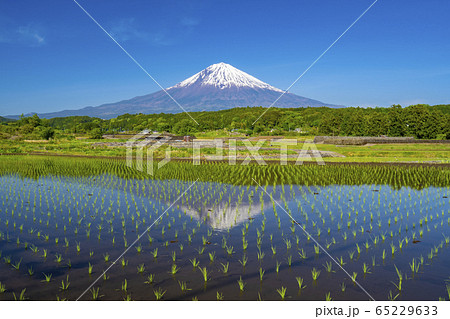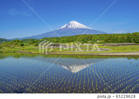 田んぼと富士山 逆さ富士 柚野の里(富士宮市)