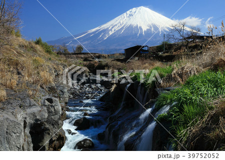 静岡県・富士宮市柚野を流れる芝川と富士山