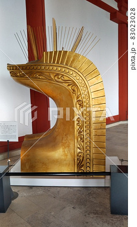 平城宮跡の北端中央に復元された第一次大極殿の中に有る大極殿の屋根のいちばん上の両端についている鴟尾