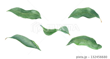 Watercolor set of green leaves on isolated background. Aromatic citrus, clove or laurel leaf plant illustration. Hand painted botanical clip art for wedding invitations, wallpapers, packaging.
