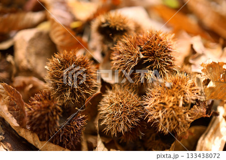 森に落ちている栗の実