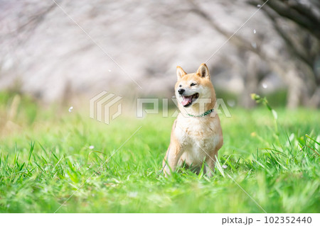 桜の季節と柴犬