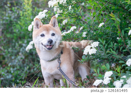 小手毬.背景に柴犬 可愛い柴犬 柴犬茜