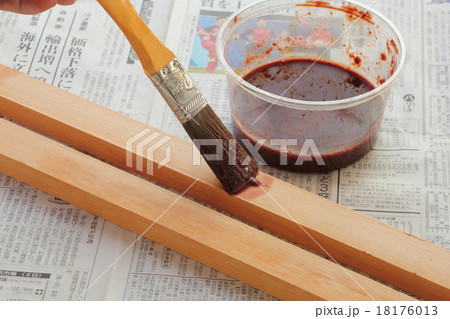 ペットボトル入りの柿渋と刷毛