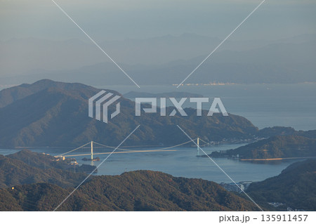 日本 広島県呉市栃原町にある灰ヶ峰の展望台から望む瀬戸内海と阿賀マリノ大橋