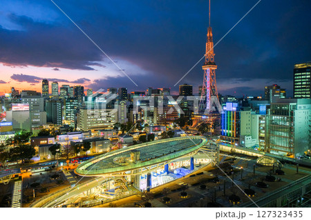 愛知県名古屋市 夕暮れの栄、名古屋テレビ塔の見える街並み