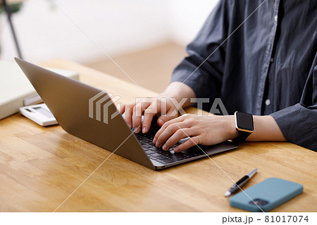 パソコン作業する女性ビジネスパーソンの後ろ姿