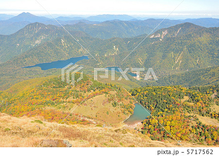 群馬県栃木県 県境 ぐんま百名山 温泉ケ岳山頂から刈込湖、切込湖方面