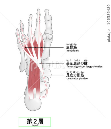 足裏の骨と筋肉のシンプルなイラスト(lumbricals)