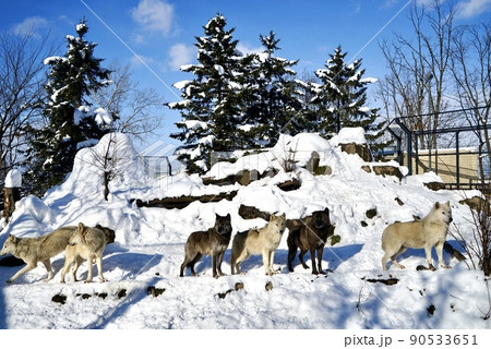 一群狼在旭川動物園
