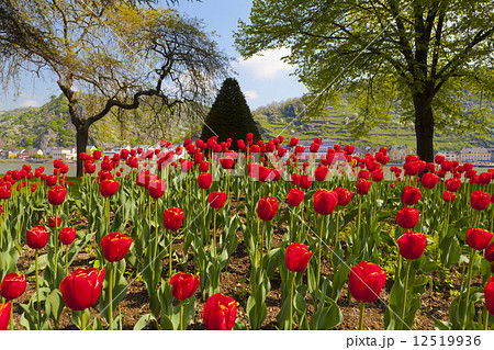 Exceptional view over a large red tulip bed