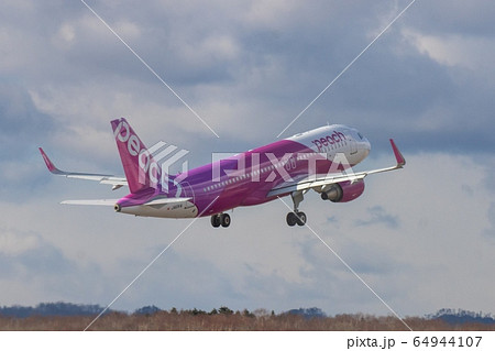 成田空港を離陸する旅客機・ピーチ航空・A320