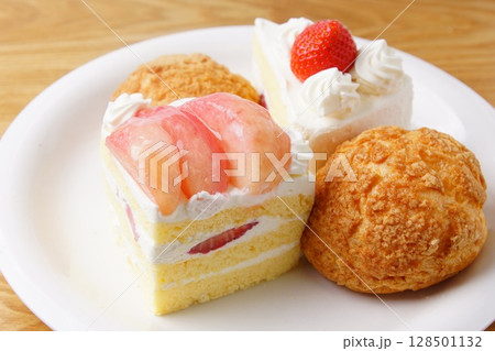 苺ショートケーキと桃のケーキ