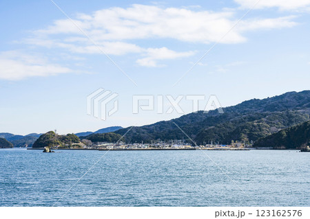 鳥羽湾めぐり遊覧船から答志島桃取町方面を望む