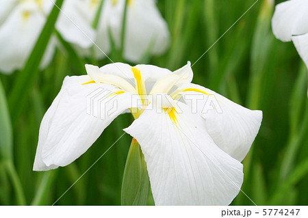 白地の花被に黄色のアイが美しい花菖蒲・桃山