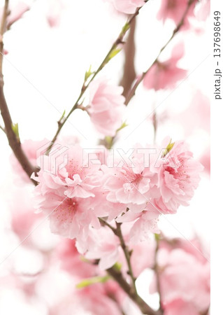 ピンクの桜の花を接写した柔らかい背景ぼけ
