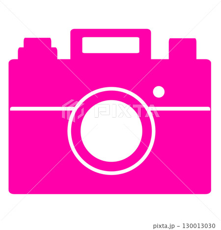 ピンク色で塗られた白抜きカメラのキュートなイラスト(透過PNG)