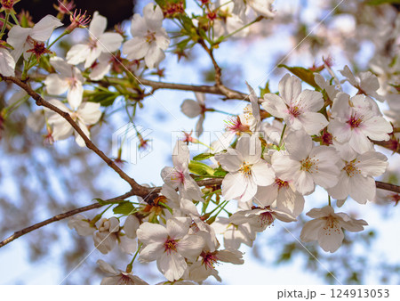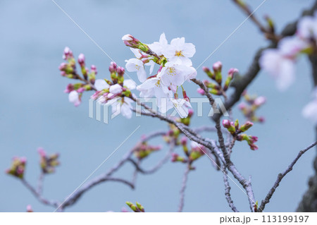 雨の日の綺麗に咲いた桜の花 ソメイヨシノ