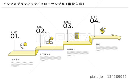 インフォグラフィック、シンプルなフローデザイン(階段矢印)、ベクター