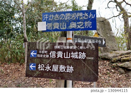 信貴山 行先表示案内板 汗かきの毘沙門さん 信貴山奥之院 信貴山城跡(空鉢堂) 松永屋敷跡