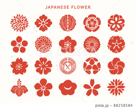 和風の花の文様と伝統的なシンボルコレクション