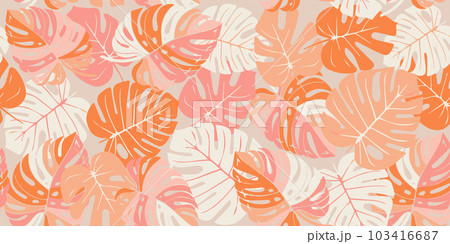 Monstera leaf tropical seamless pattern, hand drawn botanical, spring and Summer time, green style, natural ornaments for textile, fabric, wallpaper, background.