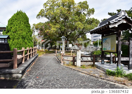 桑名市 歴史を語る公園散策路と鮮やかな紅葉と観光案内板