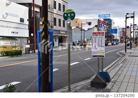 三重県桑名市 桑名停車場線と有楽町バス停と周辺街並み