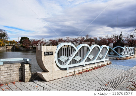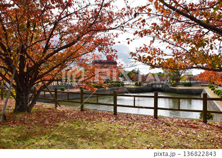 三重県 桑名市の吉之丸・舟入橋と内堀と紅葉