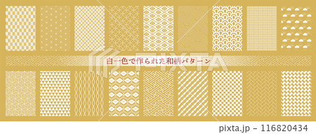 白一色で作られた日本の伝統的でモダンな和柄シームレスパターンセット