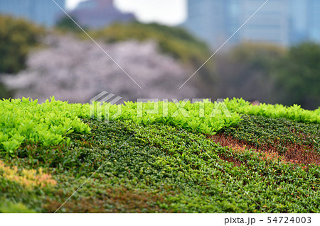 皇居東御苑の竹橋から見る大手町オフィスビル群