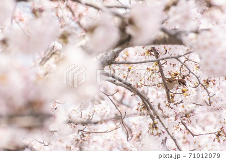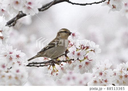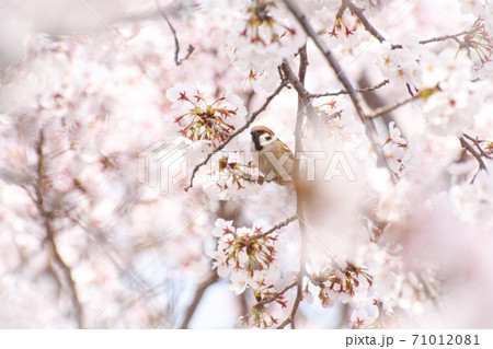 サクラとスズメ ソメイヨシノ サクラ さくら 桜 雀 鳥 春 季節 4月 日本
