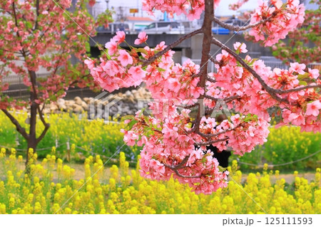 西郷川河口公園(河津桜と菜の花)<兵庫県神戸市灘区>
