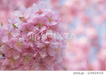 ピンクの陽光桜のクローズアップ 【空背景】 【満開】