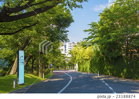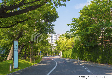 緑あふれる東京の道路風景。春。