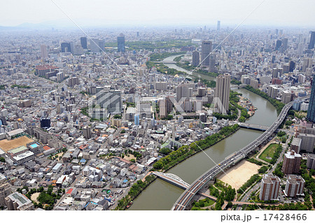 川崎橋の上から見た大川沿いの市街地風景 大阪市