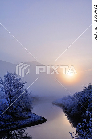 河川 日の出 雪