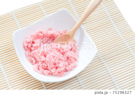 巻き寿司、ちらし寿司の具の桜でんぶ【白背景】