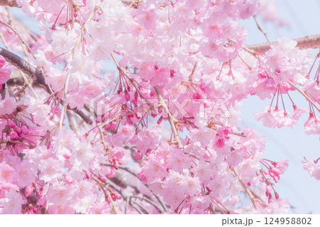 青空に映える美しい満開のしだれ桜