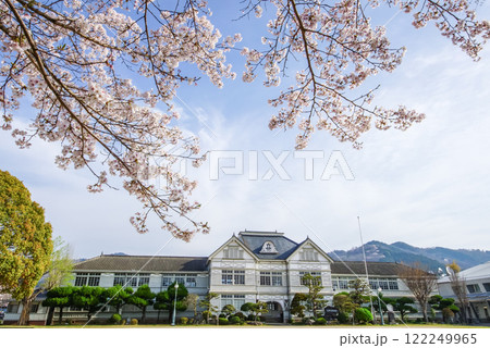 桜咲く木造校舎 岡山県真庭市「旧遷喬尋常小学校」
