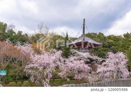 京都市 善峯寺桜あじさい苑の満開枝垂桜と散策路