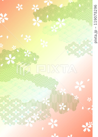 ピンクの雲と舞い散る桜吹雪の和風背景ベクターイラスト A4サイズ横