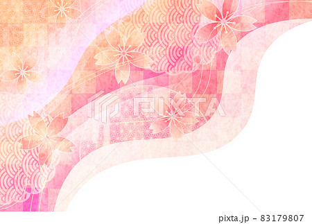 可愛く優しいピンクの桜や和柄の波フレーム水彩