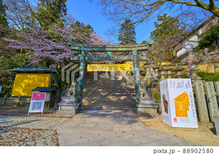 金刀比羅宮桜馬場西詰の銅鳥居と桜