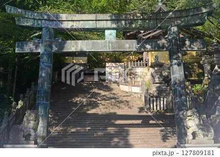 香川県金刀比羅宮桜馬場西詰銅鳥居と石段
