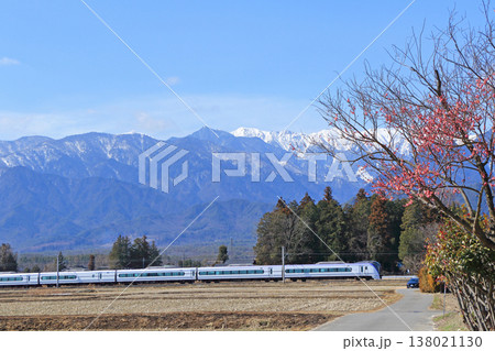 大糸線 早春の安曇野を行く特急あずさ