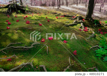 京都市伏見区城南宮の梅と落ち椿を撮影
